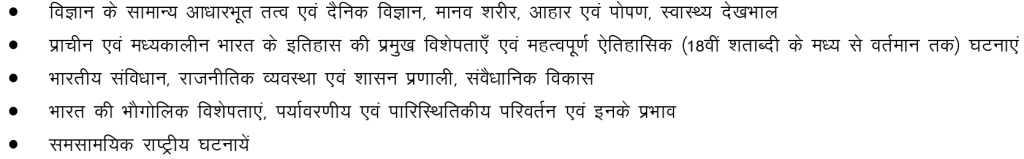 1. General Science, History, polity and Geography of India, General knowledge, Current Affairs